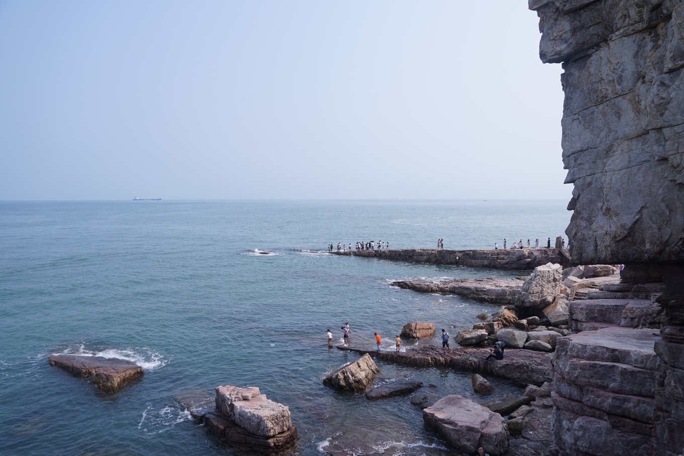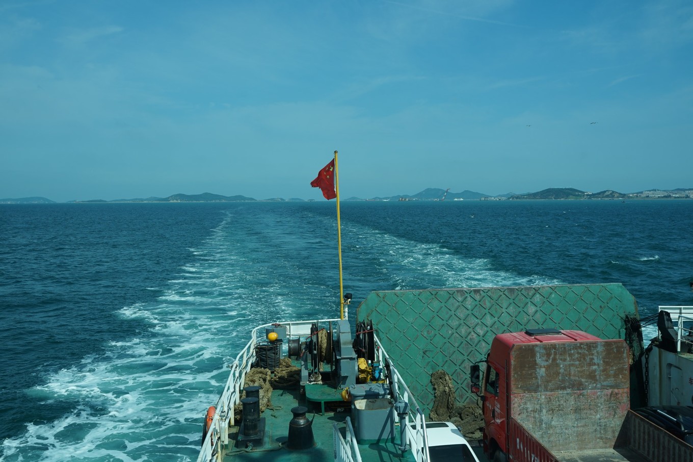 八月底攜夫人自駕游山東半島,第一站就是長(zhǎng)島。七個(gè)小時(shí)的的行程達(dá)560公里,下午3點(diǎn)半到蓬萊。原計(jì)劃在蓬萊過夜,開車到蓬萊客運(yùn)站,恰好有渡輪,便臨時(shí)決定乘船過海。渡輪過海手續(xù)很簡(jiǎn)便,驗(yàn)過身份證,看過汽車后備箱,算是安檢完成,汽車順利開上船。長(zhǎng)島南北島景點(diǎn)相距十幾公里,自駕帶車上島游玩會(huì)很方便。