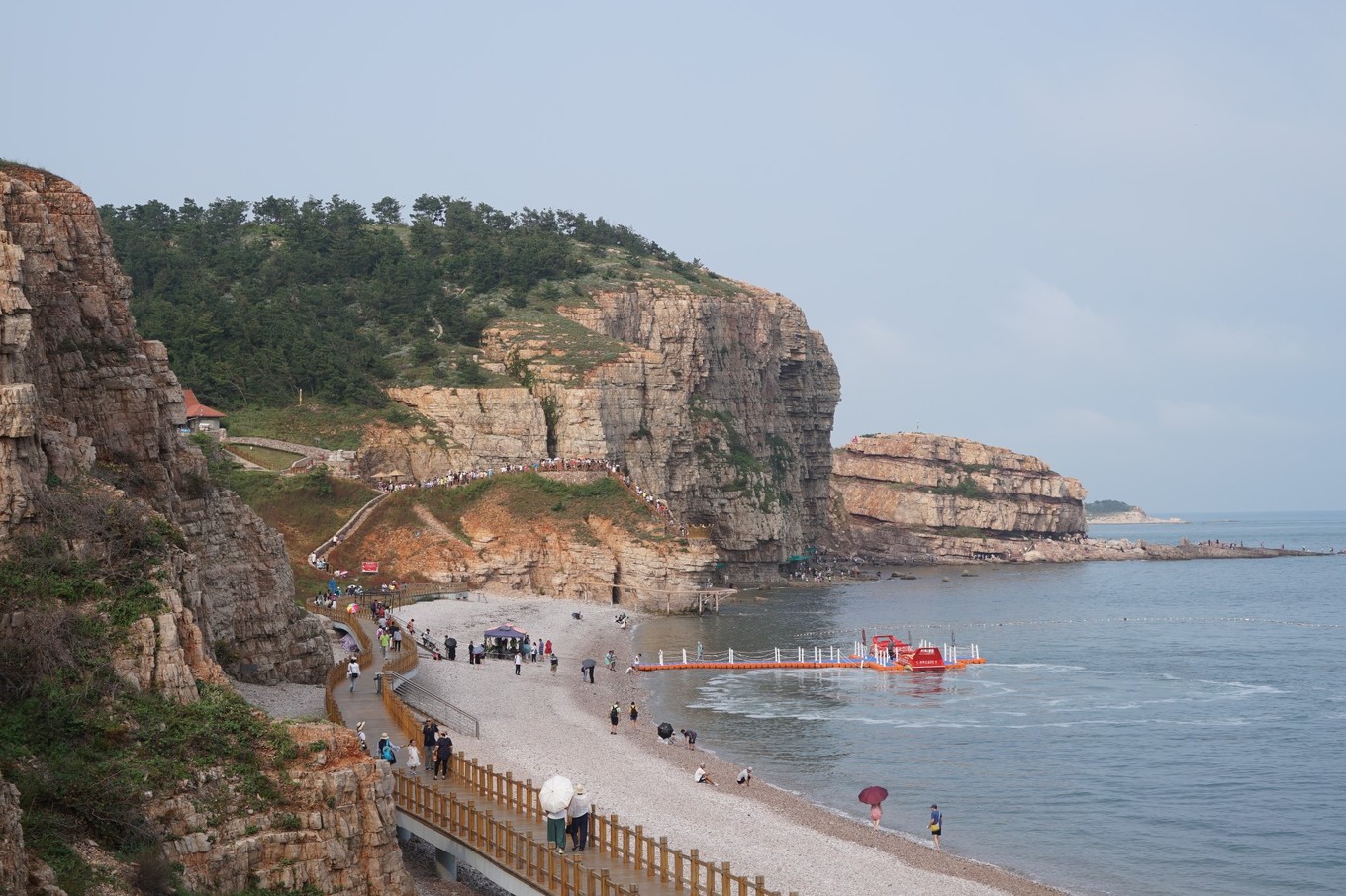 長(zhǎng)山尾,面對(duì)黃海,海水清澈,海天一線景色宜人,陣陣海浪拍擊巖石發(fā)出有節(jié)奏的濤聲。走在海邊長(zhǎng)廊上遙望大海、漫步鋪滿鵝暖石的海灘遐想,坐在凸起的礁石上聽濤聲,在大海中嬉戲玩水,一幅幅醉人的畫卷。
