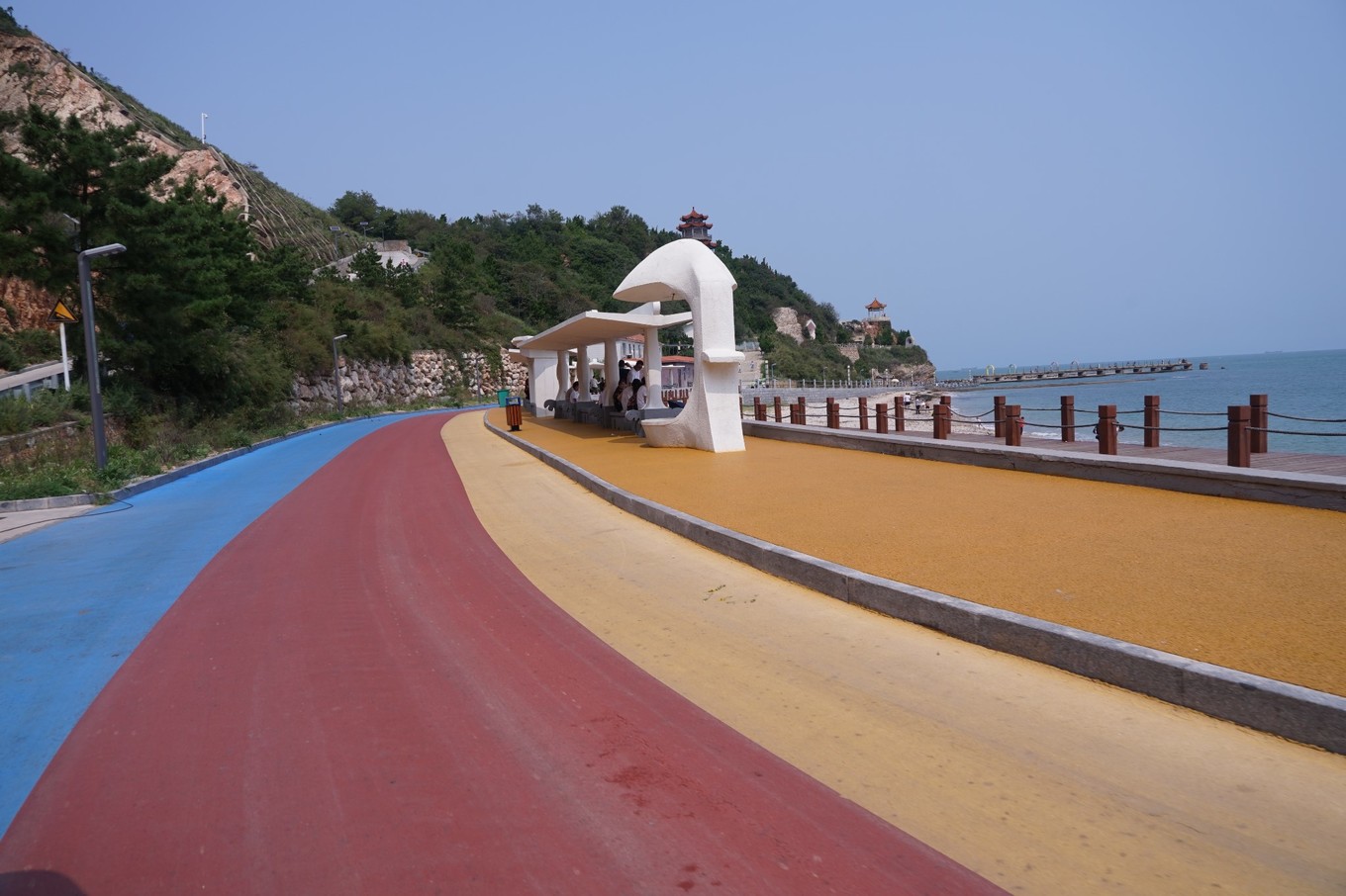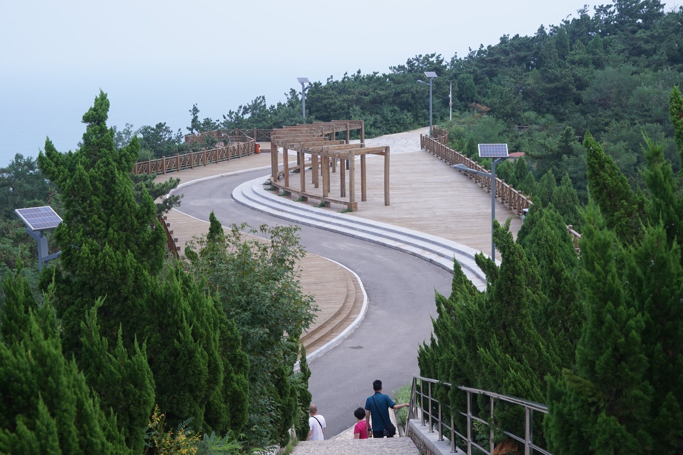 這條下山路也設(shè)計(jì)成S型,曲線優(yōu)美,和山下的大海相得益彰。