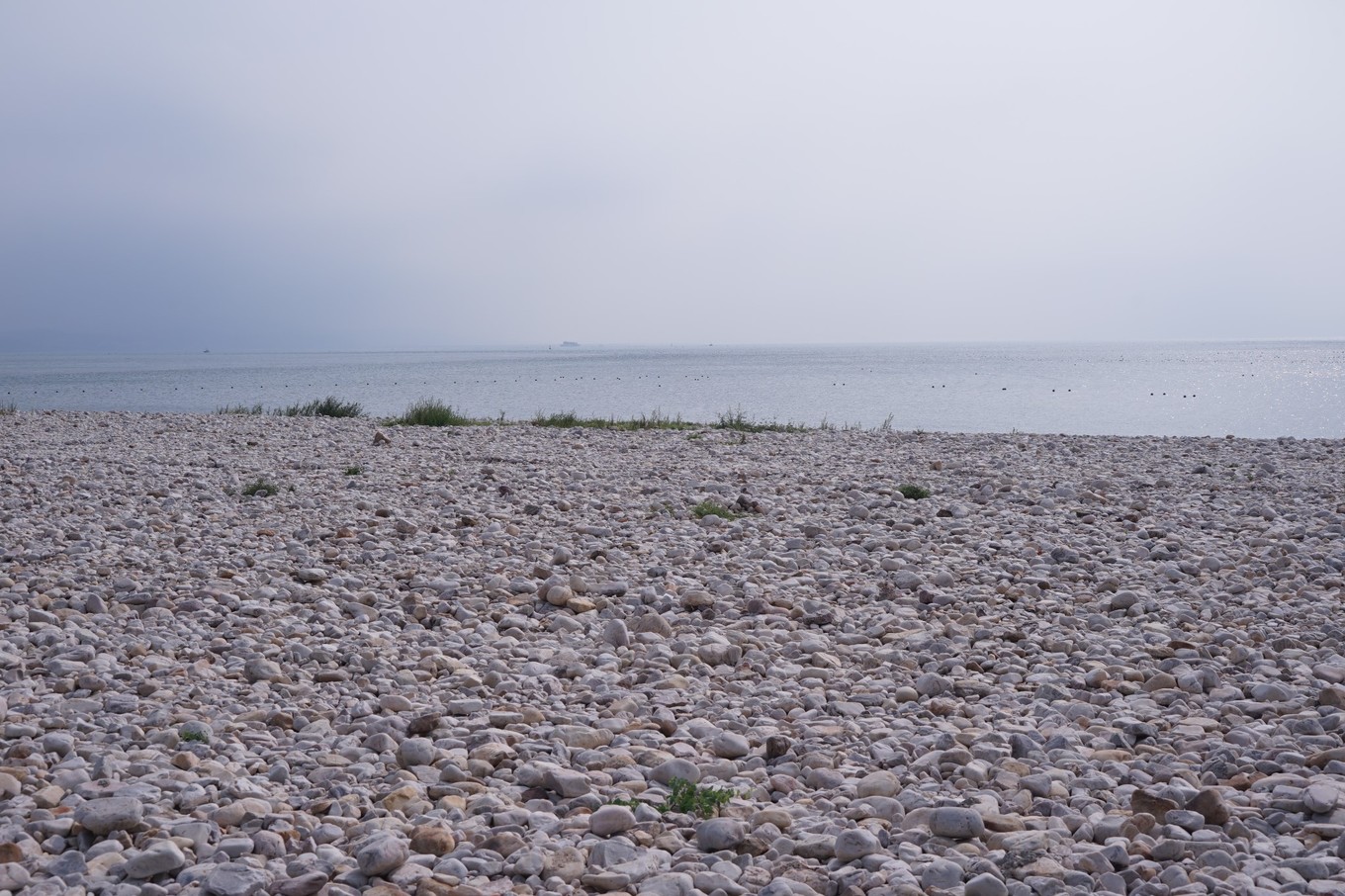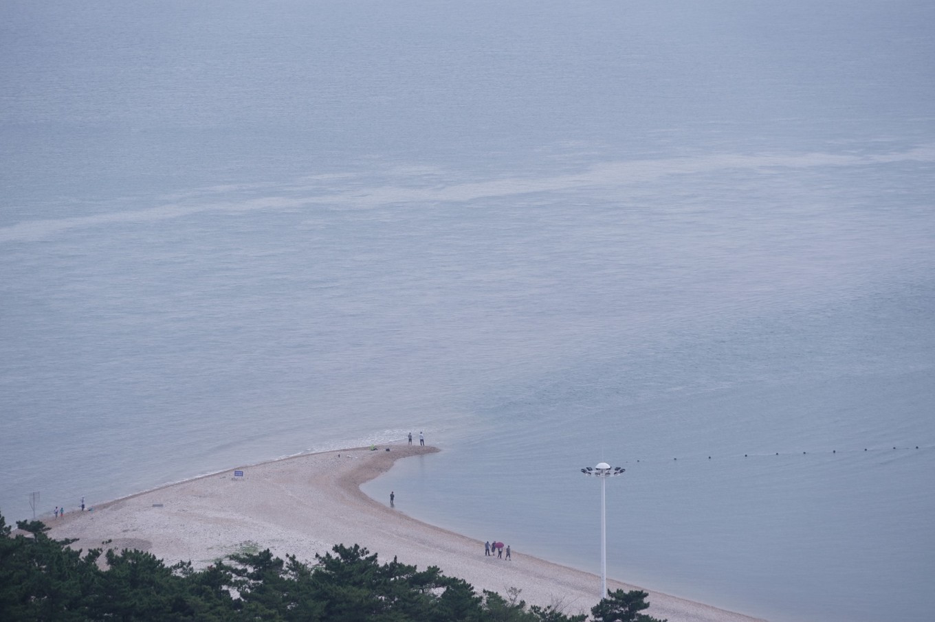 長(zhǎng)山尾在島的最南部,是由各色卵石堆砌而成的,形狀由闊而尖,彎曲飄逸,渾然天成,海中則雪浪四濺。千載洪波,將滿灘的卵石洗刷得光潔如玉