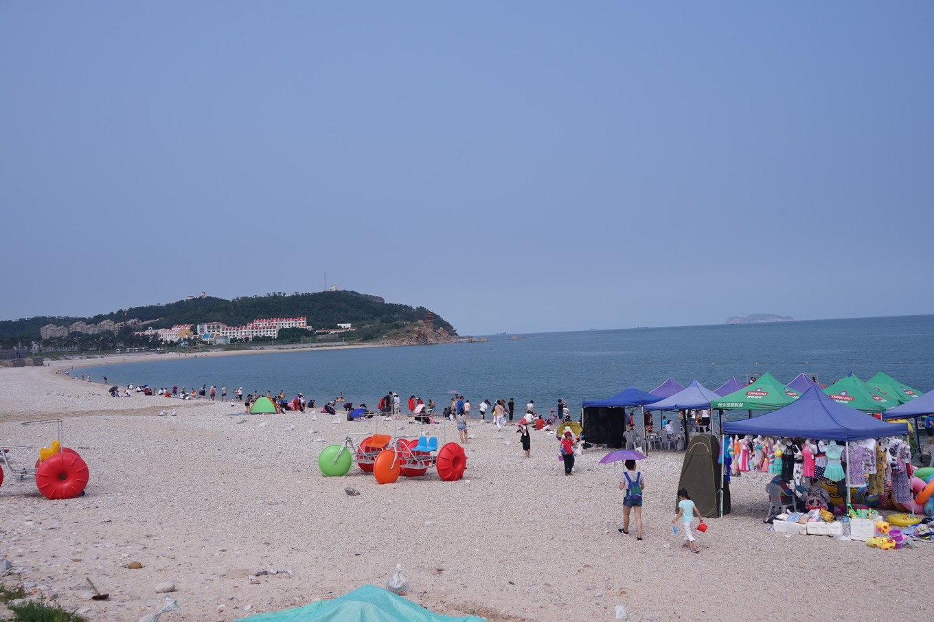 然而月牙灣最令人神往的的還是它的海灘上鋪滿晶瑩碧透的鵝卵石,這里沒有沙灘,只有滿地的鵝暖石色彩斑斕、圓潤(rùn)如玉、晶瑩碧透。你不得不驚嘆大自然的偉力,創(chuàng)造出如此神奇的作品。