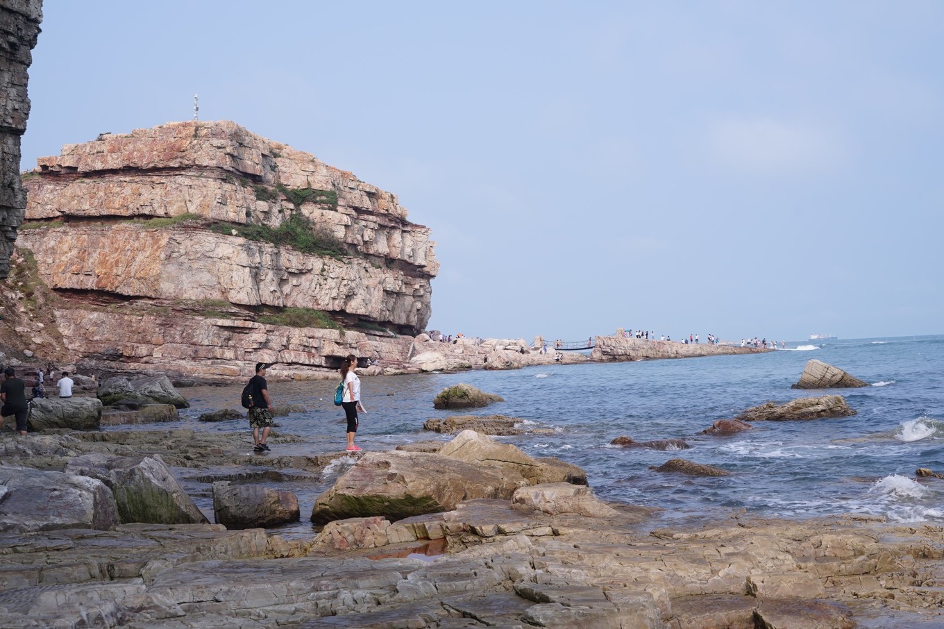 來長(zhǎng)島旅游,一定要去九丈崖。位于長(zhǎng)島北長(zhǎng)山島西北角的海濱斷崖,藍(lán)天、碧海、白浪、石崖、礁石、長(zhǎng)廊、港灣交相輝映,一副獨(dú)特的壯觀影像,沖擊你的視覺感官。