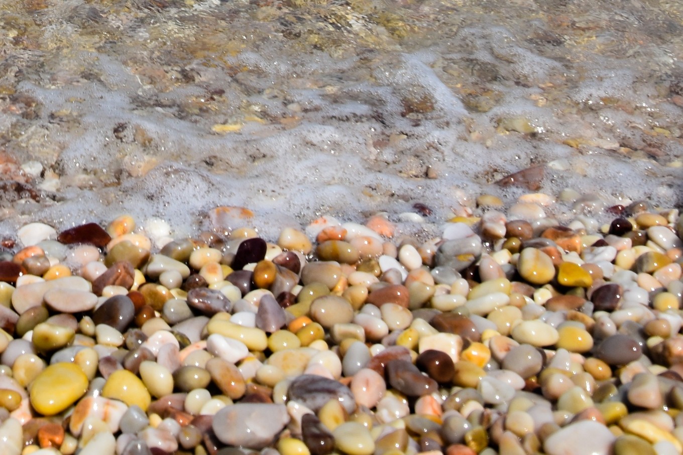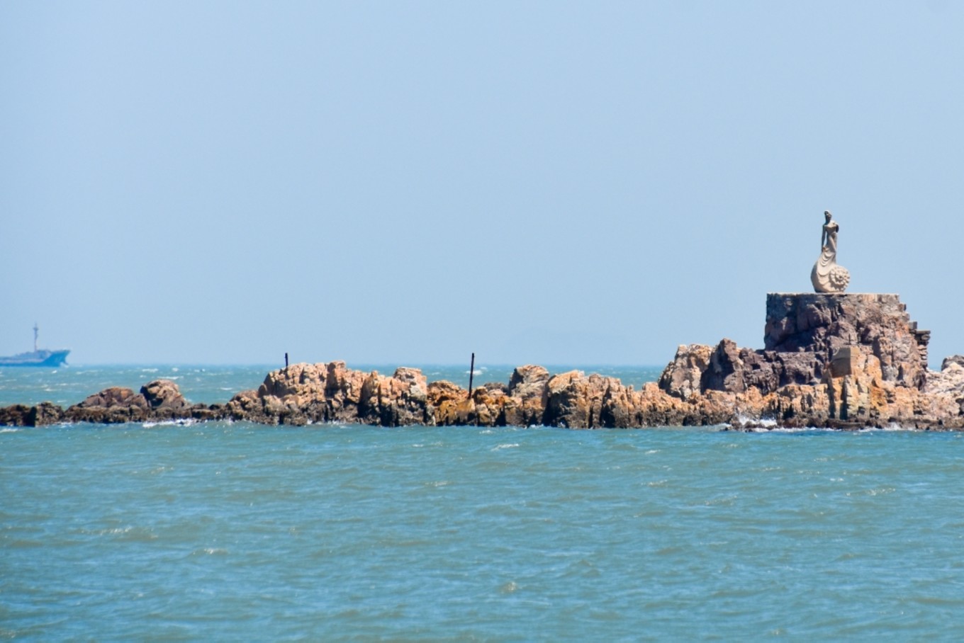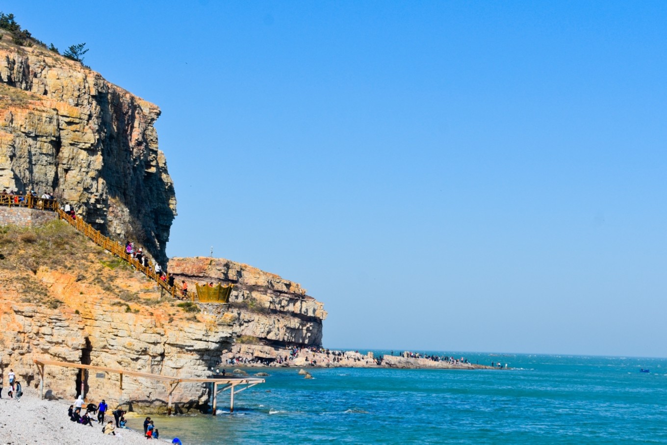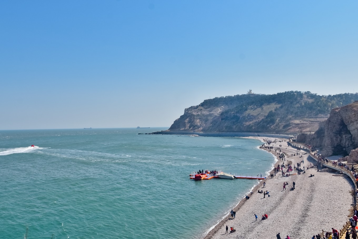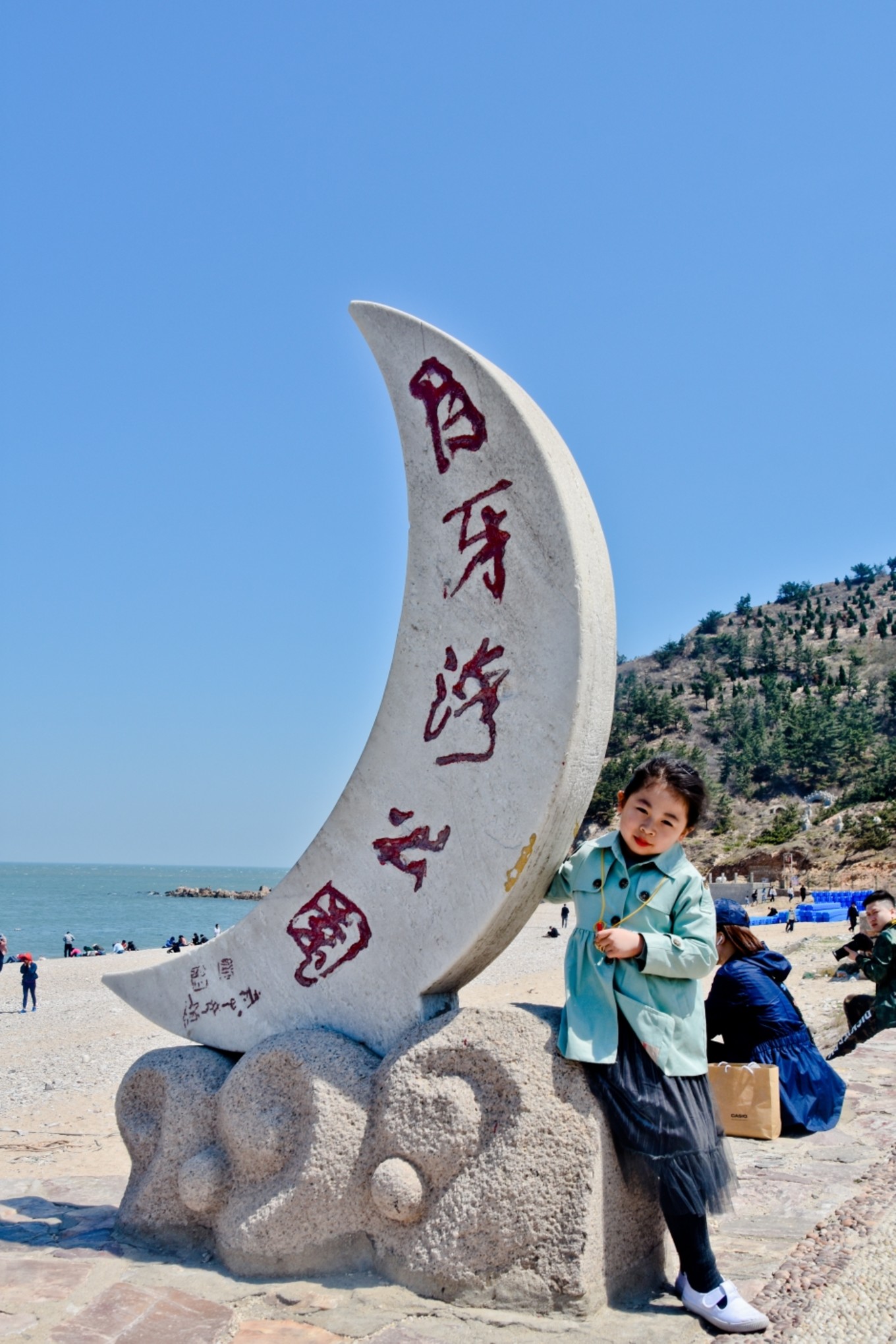 月牙灣因海灣形似一彎新月而得名,海灘延綿1000余米,是天然的海水浴場。月牙海灘為全國罕見的礫石灘。海灘球石是由于地殼運動地表隆起后造成附近山巒的巖石脫落,石塊置身于弧形的海灘,經(jīng)過海浪無休止的沖刷磨礪而逐漸變圓形成球石。因石英巖中夾雜了鐵、錳、鋅等雜質(zhì),因而呈現(xiàn)出各種顏色。