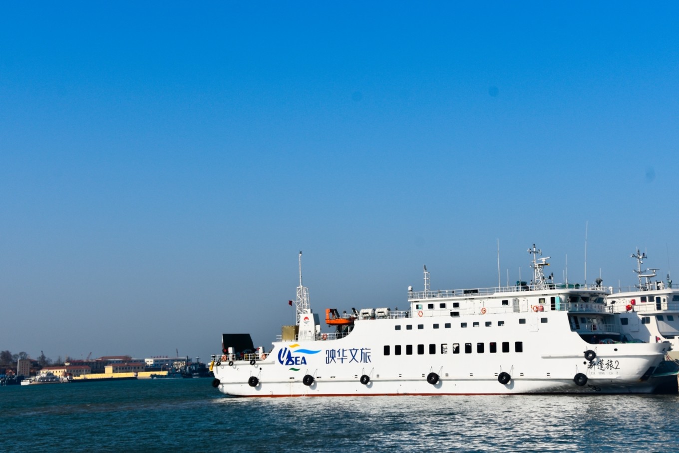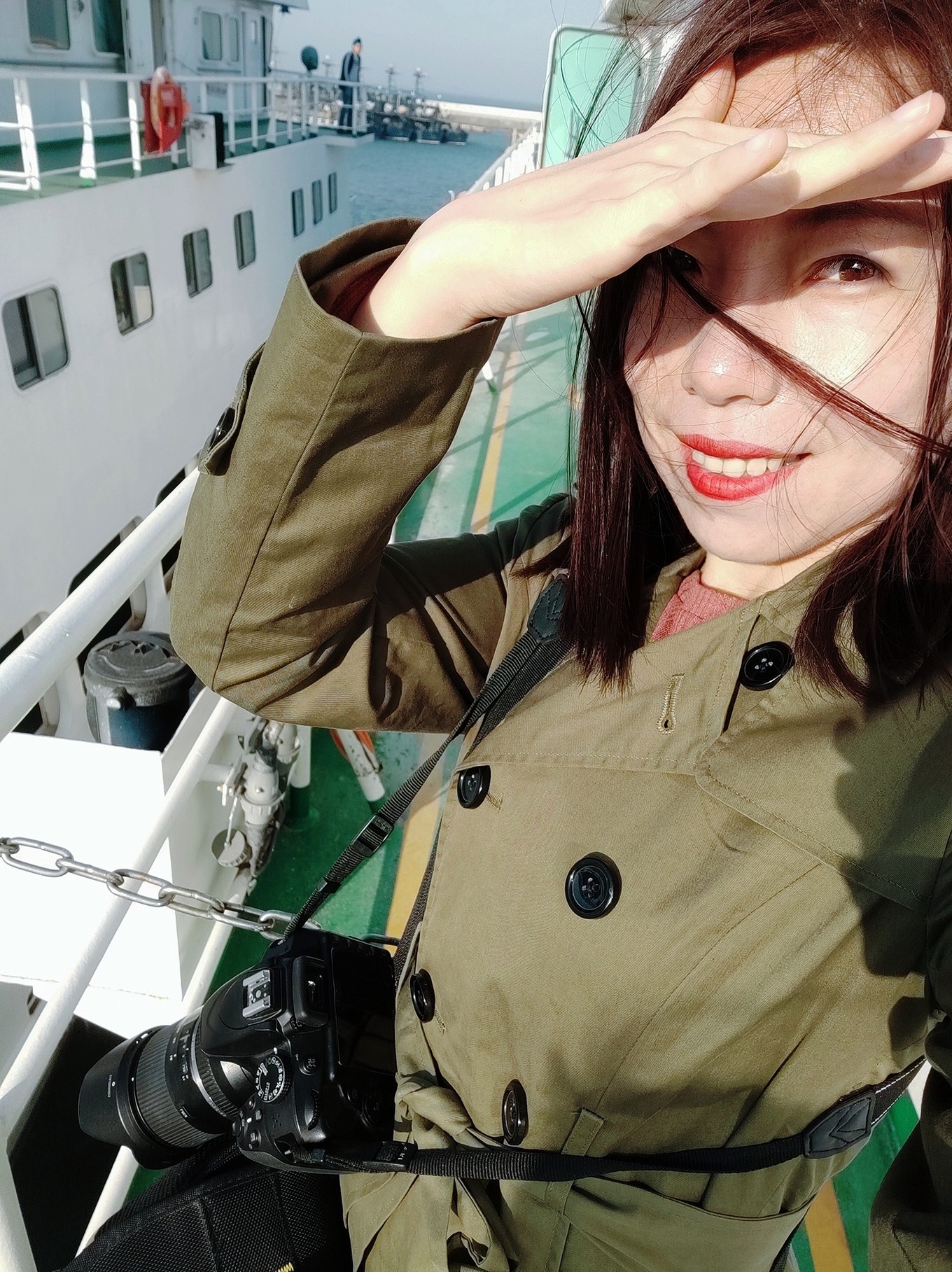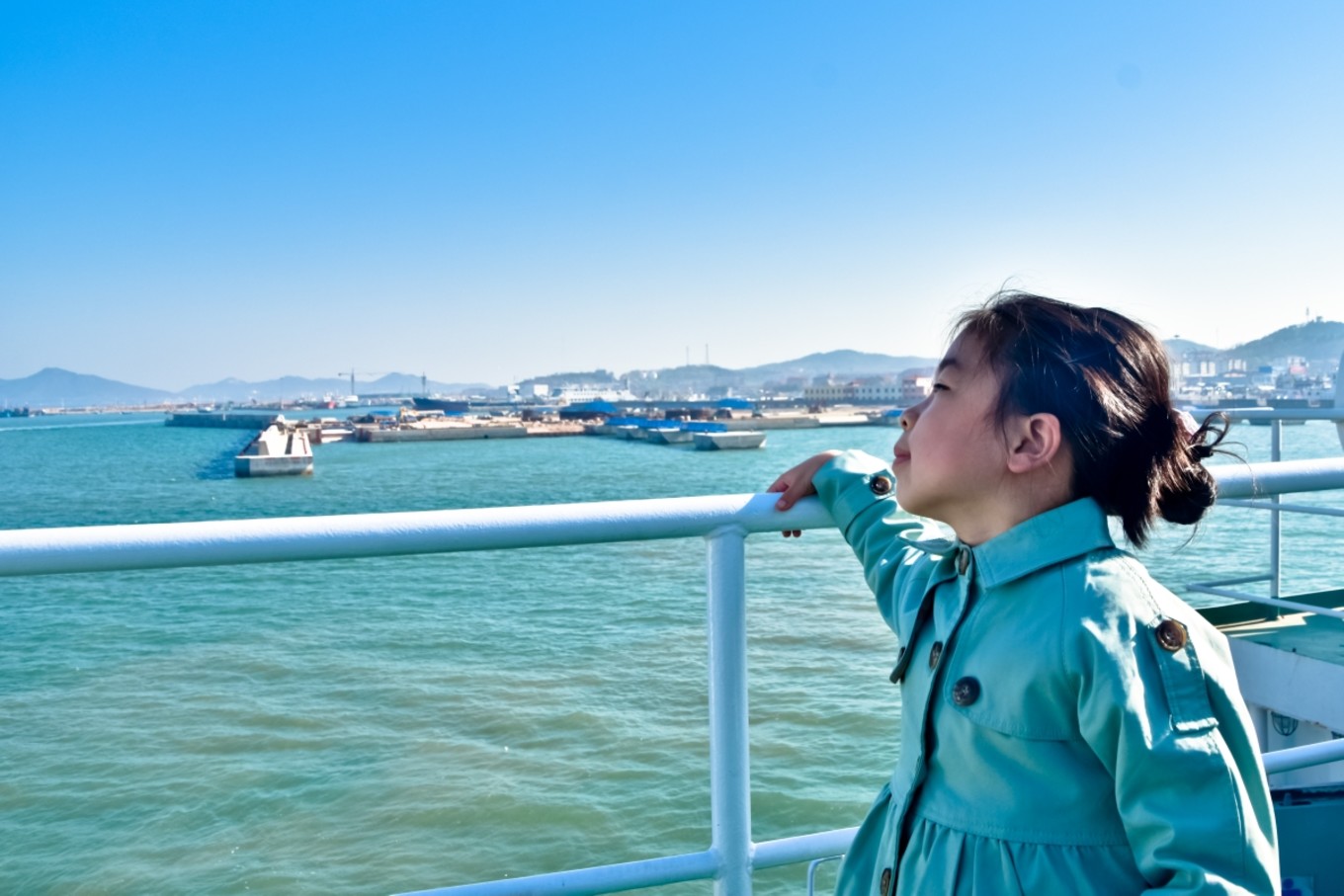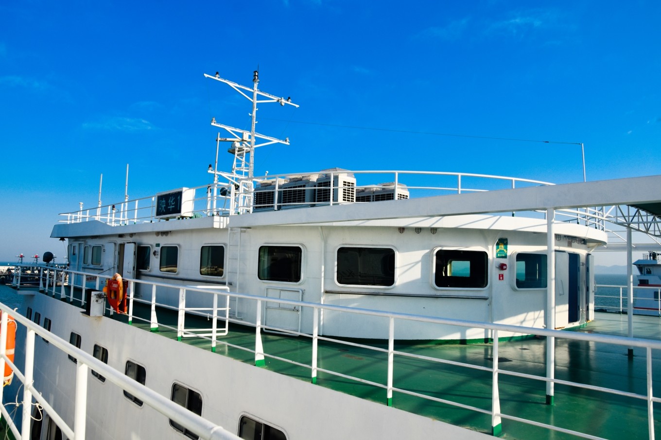 準備登船,船分三層,最下面一層用來擺渡貨車和私家轎車,第二層用來擺渡旅客,第三層可以每人加十元錢近距離喂食海鷗。而我們此行目的就是為了讓考拉體驗親近海鷗每人加了十元錢上到了三層甲板。這錢花的值??!高處的風景就是好!