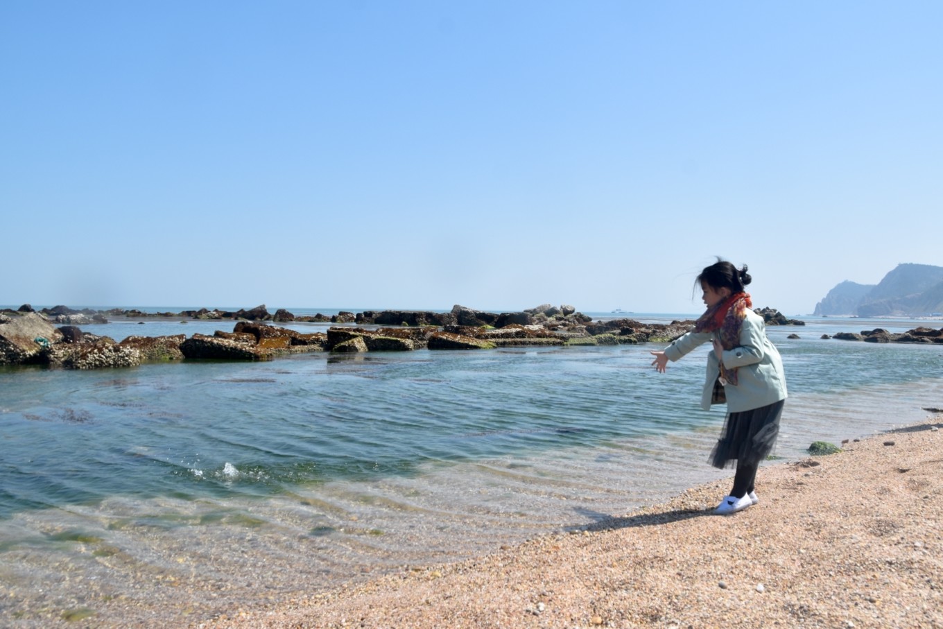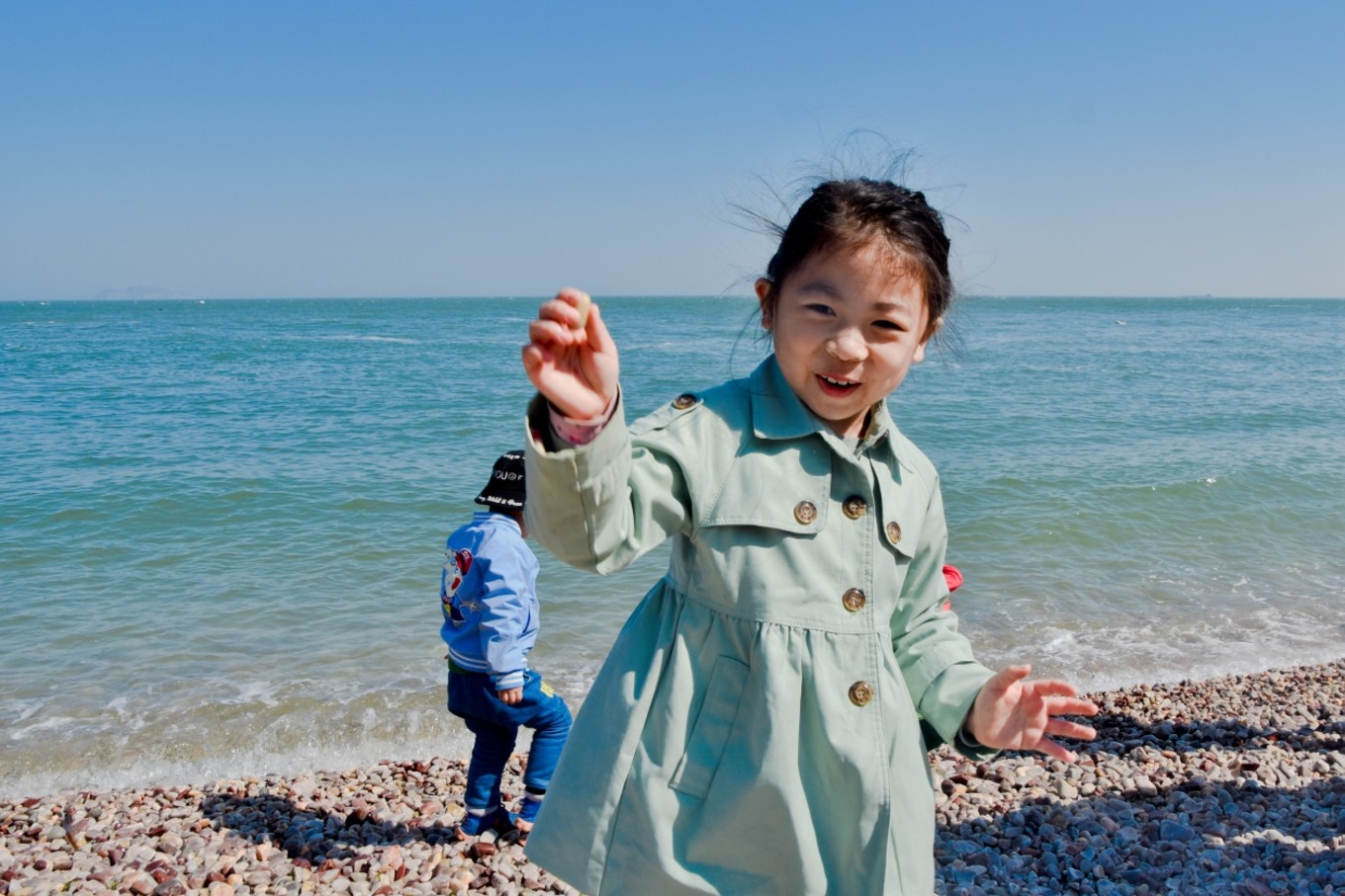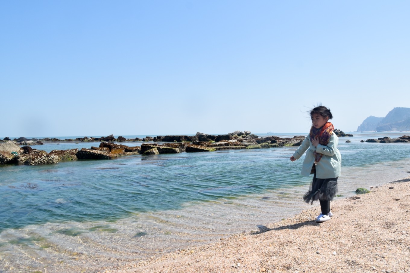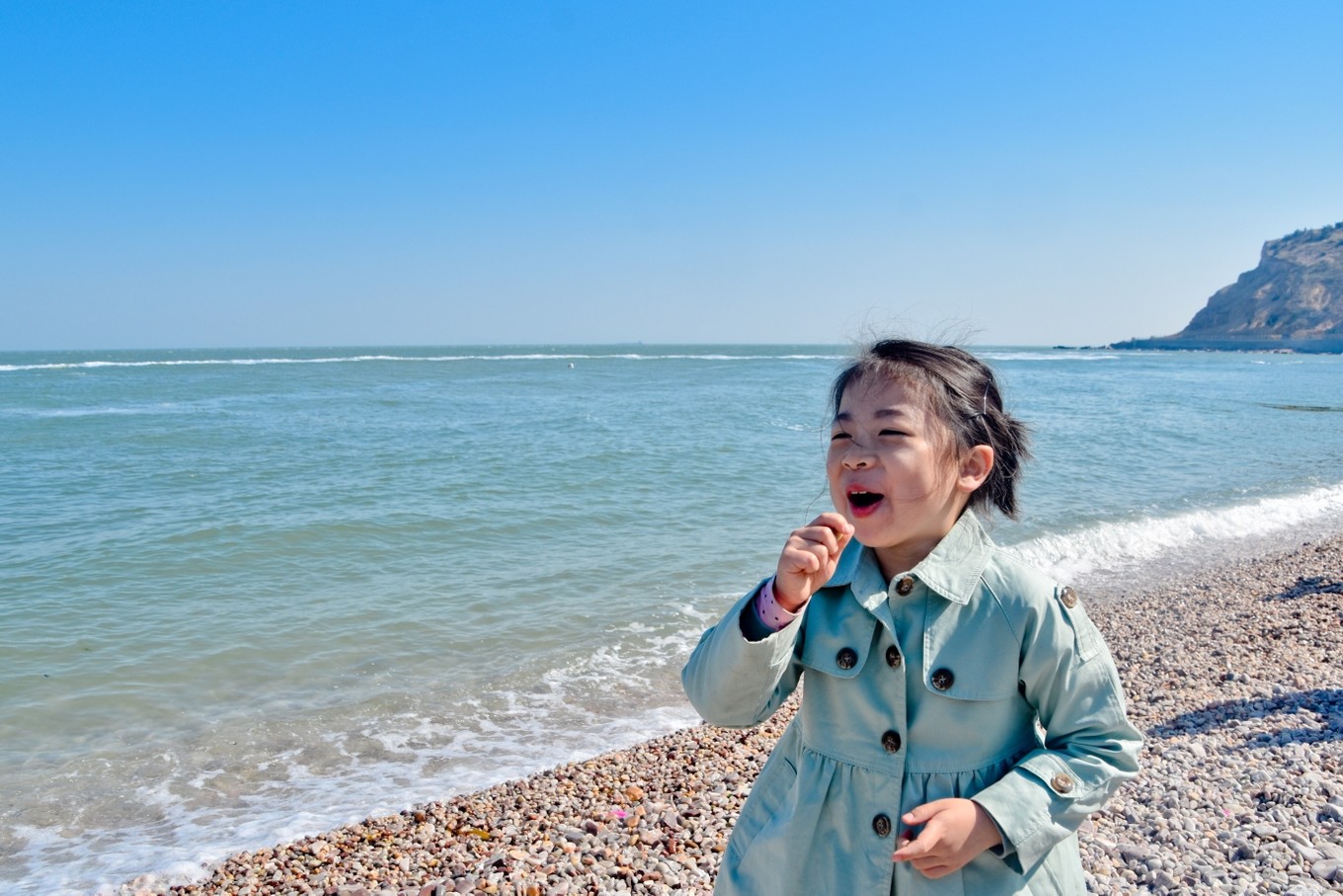 五一的高速就是龜速,本來預(yù)估滴八個小時車程因為堵車用了十四個小時才到蓬萊。旅途中我和考拉一邊聽音樂一邊看風景。如此漫長的過程她不吵不鬧,表現(xiàn)了超強的自控力和忍耐力,受到全車人的表揚。
