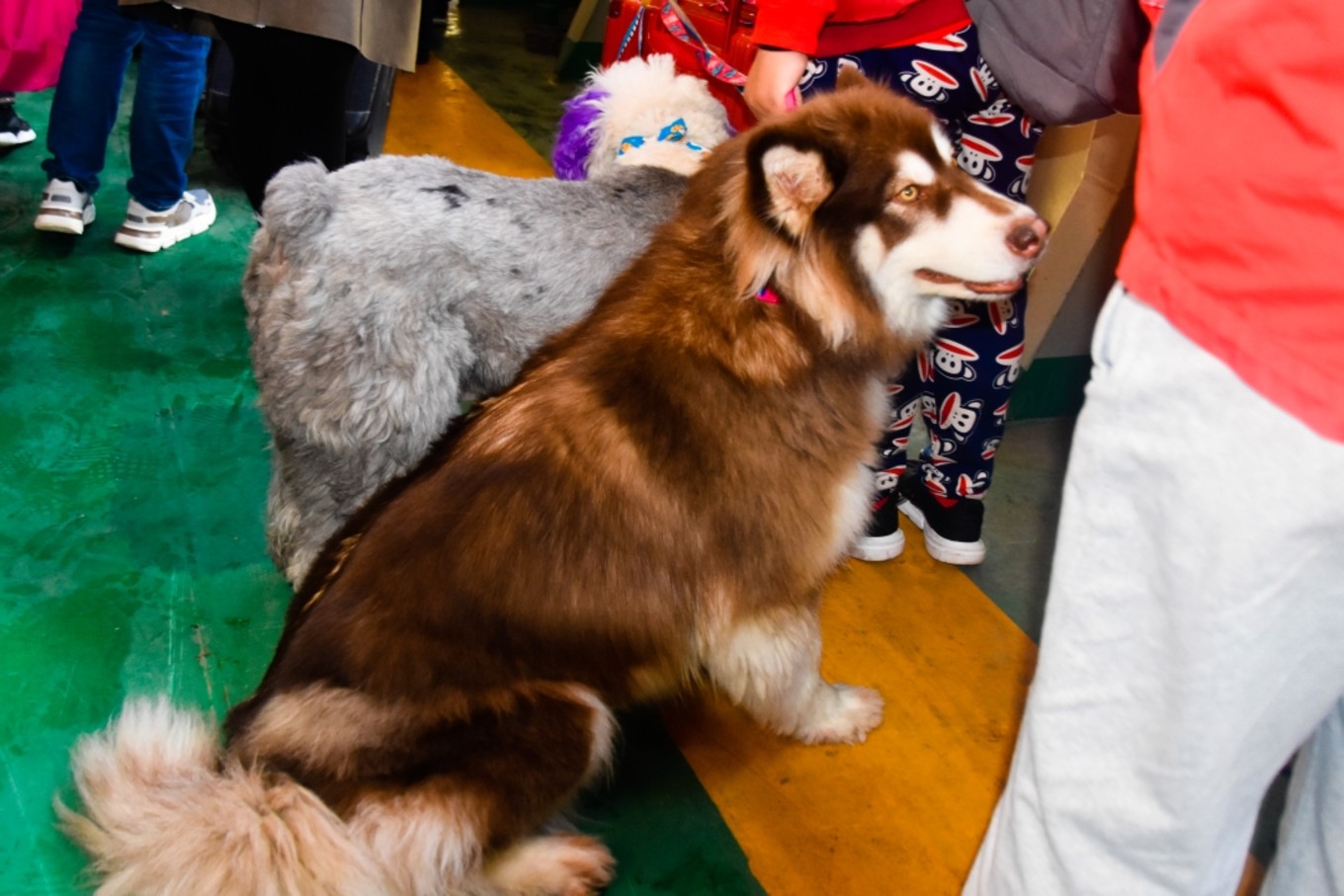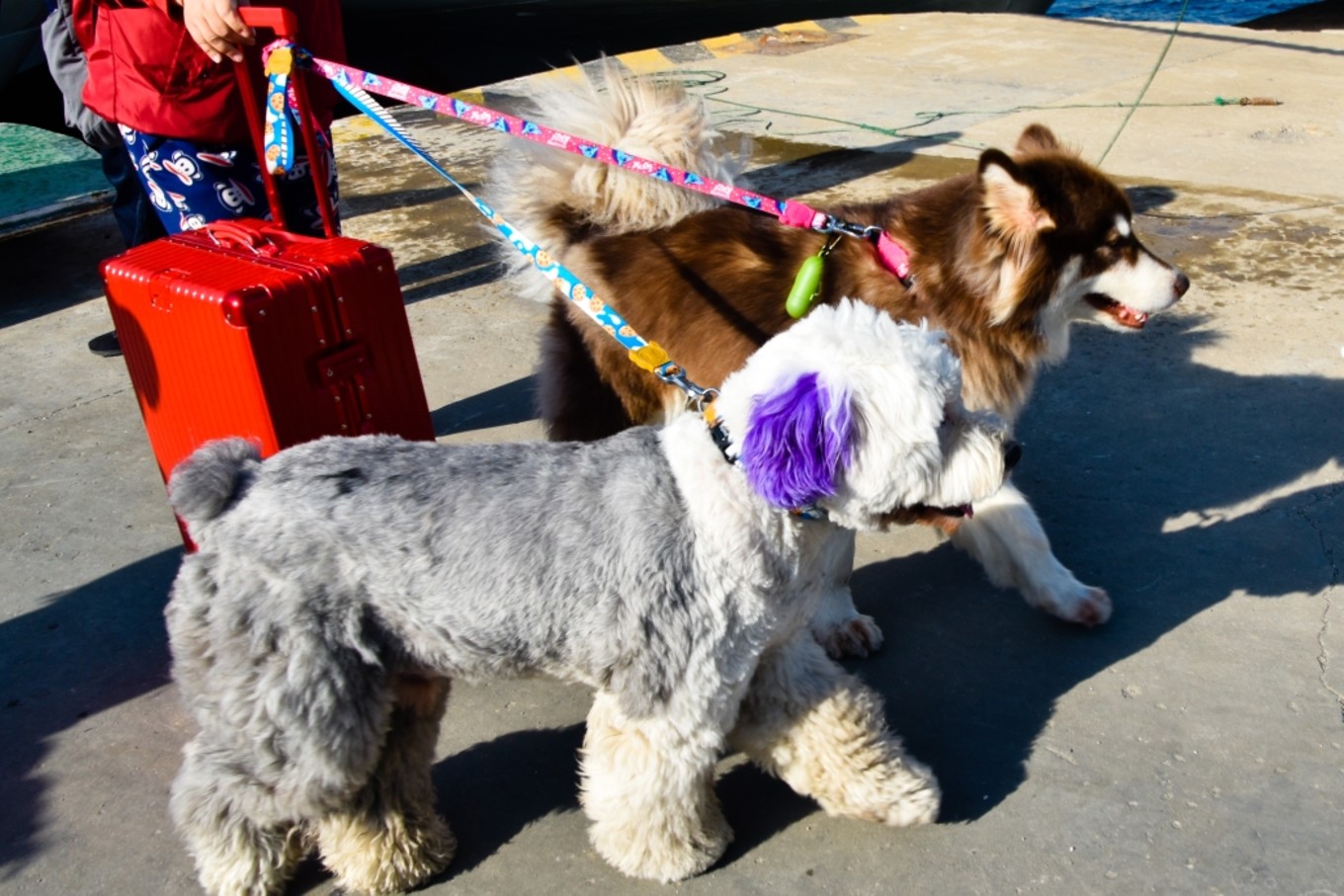 四十五分鐘后船到碼頭了,甲板被緩慢的放下來,跟著坐船的狗狗們也很著急要跟著主人趕快下船去島上玩咯!