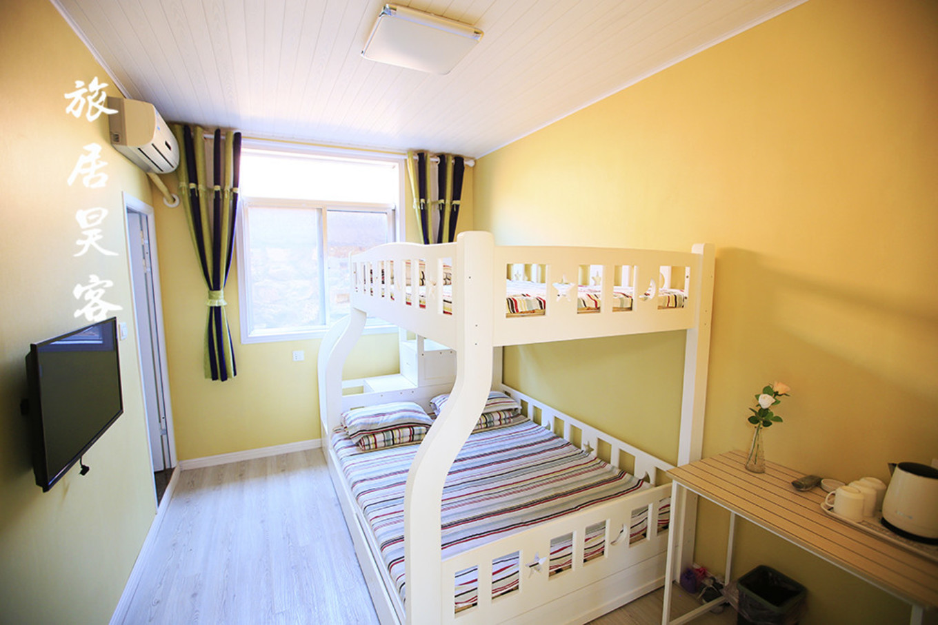 這是小妞選的房間,因為不是旅游旺季,我們可以挑房間。小妞選這個絕對是因為母子床好玩,好吧, 隨你啦。