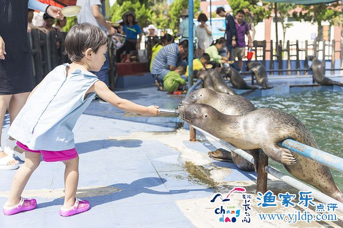 月牙灣里有一處海豹表演的地方,表演實在是沒什么看頭,比起老虎灘這些知名的海洋公園來說差的不是一點兩點的。不過可以近距離喂喂海豹還不錯,對于2歲的孩子來說能得到不少鍛煉。