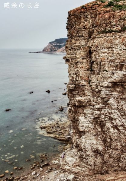長島 九丈崖景區(qū)因其崖壁的巍峨險峻而得名。上午是陰天,雖然少了藍天白云的襯托,但并不影響它的壯觀