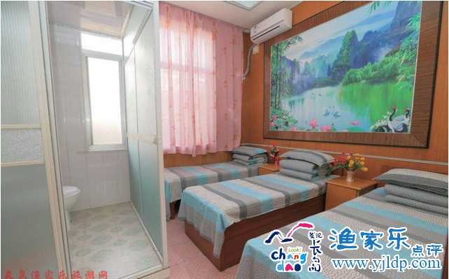 漁家共設(shè)有2個(gè)標(biāo)準(zhǔn)間3個(gè)三人間1個(gè)四人間(空調(diào),獨(dú)衛(wèi)),2個(gè)漁家特色大火炕(空調(diào),獨(dú)衛(wèi)),1個(gè)家庭套間(空調(diào),獨(dú)衛(wèi))可同時(shí)容納24人入住。房間整潔舒適,全天熱水供應(yīng),無線上網(wǎng),盡最大努力給予您家的感覺。
