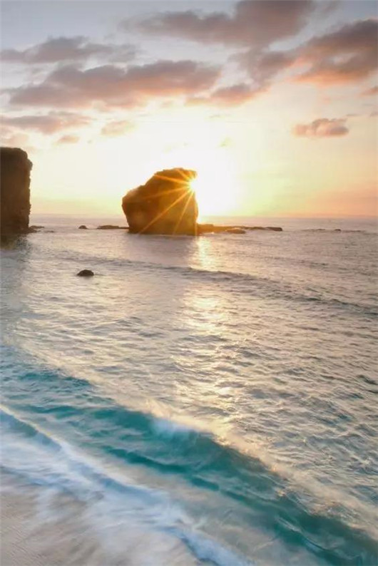 清晨初升的太陽照耀的天空和海水一片金黃,長島景點熱情而又燦爛,縹緲而又夢幻。