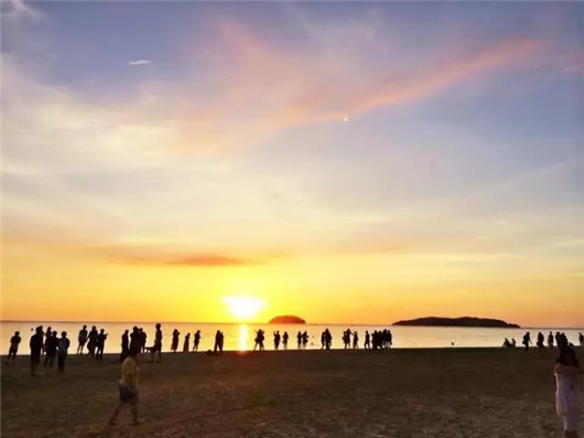長島風(fēng)光明媚,海灘迷人,日月星去變幻出五彩風(fēng)光,晴空下,碧藍(lán)的海水拍打著島礁,陽傘如花。