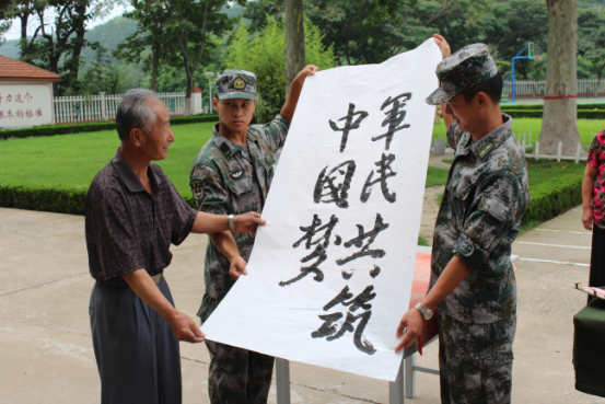 鄉(xiāng)黨委政府領(lǐng)導(dǎo)攜帶節(jié)日慰問金和慰問品先后走訪看望武警官兵和駐島部隊(duì),長(zhǎng)島民宿并與駐軍官兵親切座談,總結(jié)回顧軍地雙方心連心、手拉手新時(shí)期雙擁共建取得的新成果。節(jié)日期間,黑山鄉(xiāng)組織鄉(xiāng)書畫協(xié)會(huì)成員,開展了“才藝互獻(xiàn),書畫進(jìn)軍營(yíng)”主題活動(dòng),鄉(xiāng)書畫協(xié)會(huì)為駐島官兵書寫了長(zhǎng)島旅游“軍民共筑中國(guó)夢(mèng)”等10余幅書法作品。鄉(xiāng)婦聯(lián)組織漁村婦女?dāng)y帶時(shí)令海鮮,為部隊(duì)包海鮮餃子。近年來,黑山鄉(xiāng)黨委政府高度重視雙擁工作,通過各種節(jié)日慰問、文化擁軍等活動(dòng)的開展,山東長(zhǎng)島推動(dòng)雙擁共建工作蒸蒸日上。