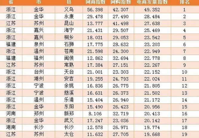 附:“電商百佳縣”排行榜