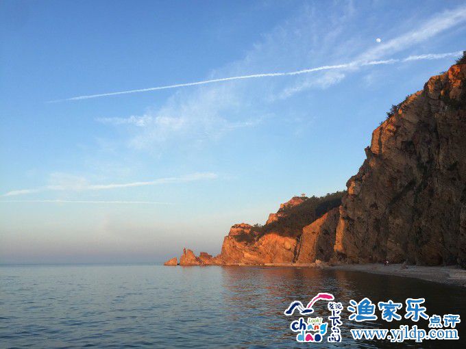 沿著一條山石小徑攀援而下,環(huán)海路的沙灘,不如海南的三亞灣那般精細(xì),卻多了一分北方海洋的壯美。抬眼望,碧空如洗,晴朗無(wú)云,鱗鱗的光影中,唯有一片翡翠色的海洋。