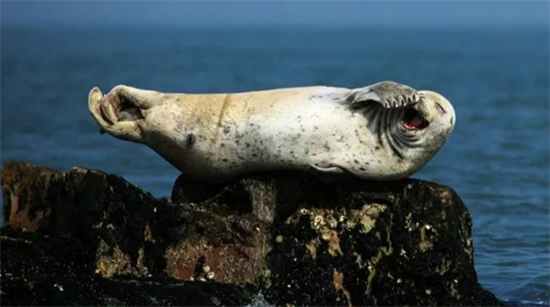 海豹礁位于長(zhǎng)島縣北長(zhǎng)山島西部海域,由大小兩塊兒礁石組成,面積約有40多平方米。礁石東面有個(gè)斜坡,上面長(zhǎng)滿了海藻菜和海蠣子,這個(gè)斜坡十分方便體重達(dá)100多公斤的海豹攀爬。海豹礁周圍海域,水深流急,魚、蝦、藻類豐富,山東長(zhǎng)島民宿是斑海豹理想的“加油站”。每年3-6月份,向東遷徙的斑海豹,成群結(jié)對(duì)的隨著潮汐的變化登上長(zhǎng)島海豹礁歇息、爭(zhēng)搶地盤、享受“日光浴”,多的時(shí)候,海豹能達(dá)到幾百只,這里儼然成了他們的“幸福天堂”。