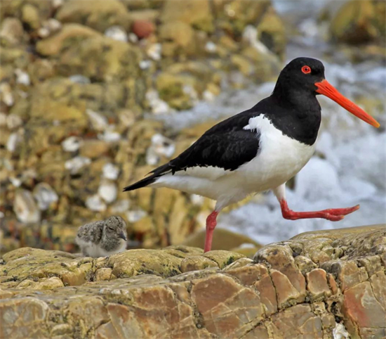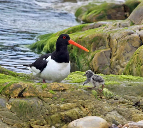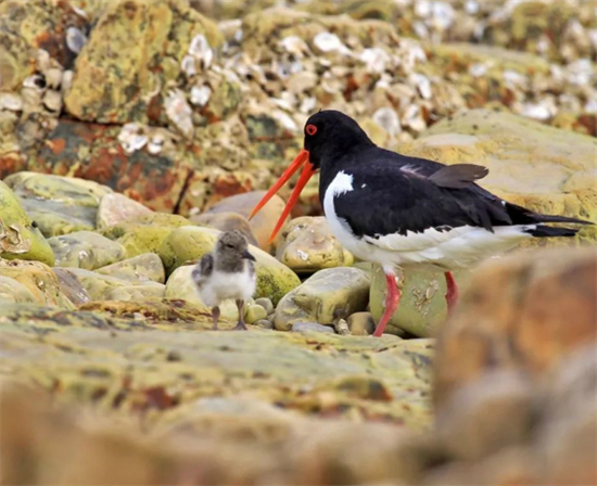 蠣鷸鳥體羽以純黑色或黑白兩色為主,體型渾圓,嘴通常是紅色或桔紅色,嘴形特別長(zhǎng),腳是粉紅色。它們?cè)谶@個(gè)季節(jié)來到島上產(chǎn)卵,哺育下一代,也給了人們觀賞的好機(jī)會(huì)。