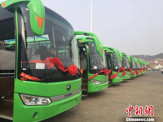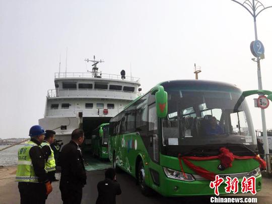30日,30輛新能源客車乘渡輪徐徐登島。隨著新能源車輛投入使用,原先島內(nèi)所有燃油公交車被全部淘汰,長(zhǎng)島公共交通綠色化達(dá)100%。