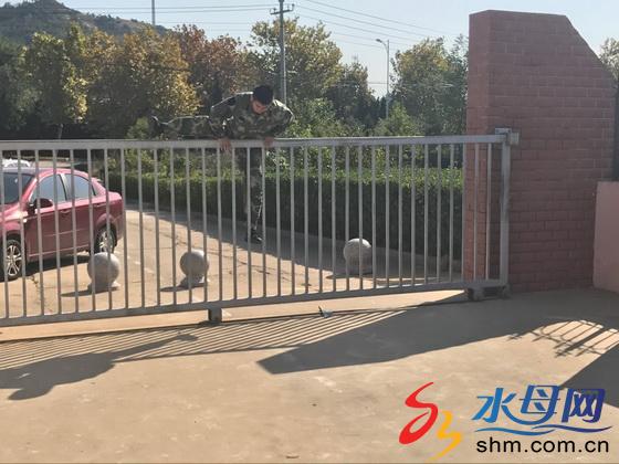 上午10時,演練正式開始。一名 “歹徒”手拿兇器翻越鐵門強行闖入校園,值班教師和學校保安持防暴器械立即進行阻攔,學校立即啟動校園反恐防暴應急預案。