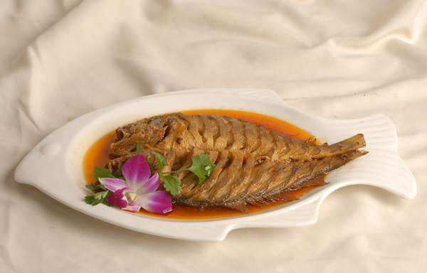 飯館所用的以大黃魚為多。海魚離水便死,不像江河湖塘的魚可以吃到活的,所以海魚務(wù)求新鮮。黃魚的做法很多,糖醋魚、尖鉆魚、干炸魚、醋烹魚、松子魚(即松鼠黃魚)、燴魚羹、炒假螃蟹肉、抓炒魚、紅燒魚,都可算為美味。家庭所做黃魚,以"侉燉"為主,黃花魚肉如蒜瓣,脆嫩比淡水魚好,每值庭花綻蕊、柳眼舒青的明媚時節(jié),大青蒜頭伴食家廚自做黃魚,也是人生的一種樂趣。