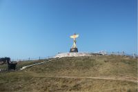 為了紀(jì)念抗擊非典一周年,長(zhǎng)島旅游局別出心裁,在著名的月牙灣景區(qū)建起一座高約1.8米的“抗非”紀(jì)念碑,并于6月14日旅游“非典”解禁一周年之日,長(zhǎng)島民宿在月牙灣景區(qū)舉行了抗擊“非