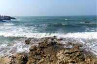 到達蓬萊那天,天陰云游,難以留下美景,于是登輪,先赴長島。海之韻——游長島有感 漫步在長島海灘,孩子似地撿拾各種漂亮的石子、貝殼。漁民兄弟正忙,海蟹,海膽,海蜇,海螺,
