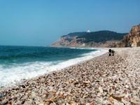 月牙灣懷抱的一泓碧水,藍得象瑪瑙,清的似明鏡,誘人不由得跳進去,把大海攬入自己的懷里。風高浪急時,滿灣翡翠,銀雪飄飄;晴空萬里時,安逸俊美,嫵媚可人。千百年來,大海以美的心靈、美的纖手磨飾出這岸邊的萬斛珠璣。