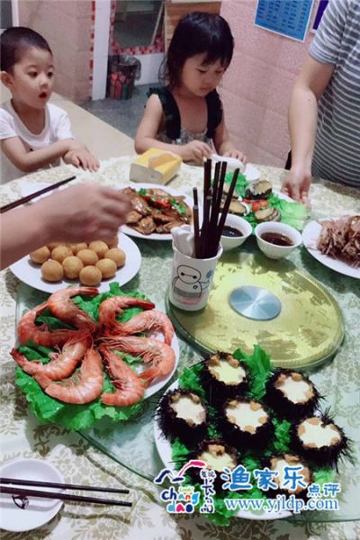 大人們安排好房間正是午餐時間,又被漁家大姐的廚藝爆表,滿桌子的美味海鮮大餐讓我們一路的疲憊頓時忘記,品種好多,有的都叫不上名!老板一家人特別隨和.熱情,用車或買票之類的事我們總是麻煩老板幫忙,白天車接送我們?nèi)ゾ包c玩兒,到用餐時間送我們回來,每天三餐漁家大姐都給變著花樣做,基本都不一樣,每個人都吃得特別開心!