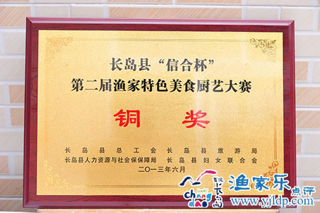 今年獲中國鄉(xiāng)村旅游金牌農家樂的稱號,山東省級四星漁家民宿,經常參加廚藝大賽榮獲三等獎和金牌菜之稱