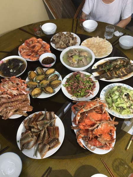 我跟老刁漁家民宿真是緣分不少,去年都想來,可是去年老刁漁家滿房了,我們?nèi)チ藙e的地方住,覺得意猶未盡,今年終于預(yù)定到了房間,了卻了我的心愿,老刁漁家真是不辜負(fù)我對(duì)它的期望,一進(jìn)門主人特別熱情,放下了心里炒的菜出來迎接,給我們安排房間,然后立馬讓我們洗手吃飯,螃蟹海膽扇貝海螺,撐得我們不行,最后還有紫菜湯,真是完美中的完美,我們?cè)诶系鬂O家住了好幾天,就是因?yàn)轱埐颂贸灾魅藷崆槲覀兩岵坏米?,明年約定好了我們一定會(huì)再來?。。。。。。。。?!
