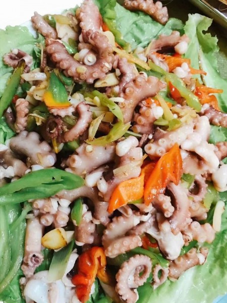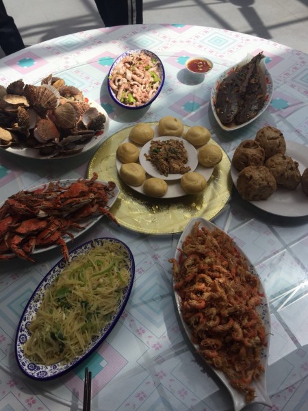 小龐一家非常的熱情,他們是家庭式的農(nóng)家院,小龐負(fù)責(zé)接待。因?yàn)槭峭厩暗牡荆瞬皇呛芏?,他特地給我們安排一個(gè)三人間和有2張大床的大房,都有空調(diào)、電視和獨(dú)立的衛(wèi)生間,我還第一次睡在那么高的大炕上。龐媽媽是手藝超贊的大廚,每天換著樣的給我們做各種各樣的美食,盡管島上的蔬菜一般都是島外運(yùn)過來的,還是在安排海鮮的同時(shí)盡量安排一、兩道青菜。每頓還細(xì)心地為我們熬制放了的八寶粥,超贊。臨走那天中午,特地為我們包了島上特色:鲅魚水餃,做了海菜湯。龐爸爸不愛說話,打回來的魚蝦絕對(duì)新鮮,第一時(shí)間送到我們的餐桌。