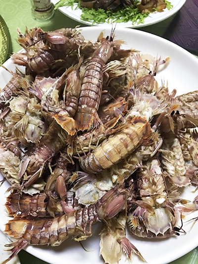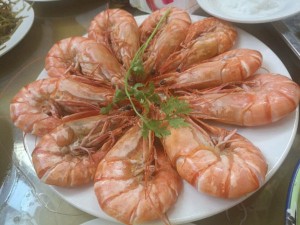 再說飯菜。我們哥幾個人,住了三天,吃了9餐,早餐雞蛋、咸魚、玉米粥,中午晚上都是9、10個菜,各種生猛海鮮不重樣,給力給力。