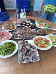 哥哥嫂子還特別熱情,把自行車借我們讓我們?nèi)タ绾4髽蚨碉L(fēng)逛逛,景色不錯(cuò)(就是晚上出去會(huì)有點(diǎn)冷,不得不說(shuō)哥哥嫂子真的很為人著想,看我們穿的不是很多,把衣服借給我們,真的派上很大用場(chǎng))騎著自行車在橋上走著,感覺(jué)真的很棒。因?yàn)槭窃趰u上,運(yùn)輸成本增加,所以菜可能會(huì)比較貴一點(diǎn)(個(gè)人感覺(jué)還好,也沒(méi)有貴的離譜)但是分量超級(jí)大,我們一大家人吃的完全綽綽有余,而且這里的海鮮超級(jí)便宜(超乎你的想象)住了兩天,一日三餐頓頓都吃,最后都沒(méi)有吃一次海底撈貴,超劃算而且味道很贊