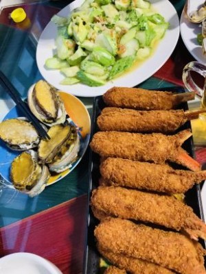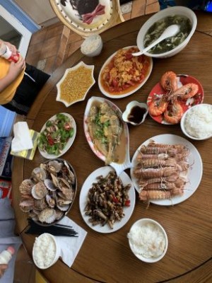 在網(wǎng)上搜到這家漁家樂,開始看圖片,以為是照片拍得好看,試一試的想法訂了兩晚,結果出乎意料的好,便把后面訂的那家高級酒店退掉,續(xù)訂了這家。幾個優(yōu)點,可以參考:1.房間很新,裝修不錯,一家三口住的四人間,兩張雙人床真的住得很舒適,所以帶孩子的最好訂這樣的房型。 2.早中晚三餐都在這里吃的,老板廚藝不錯,三天的飯頓頓海鮮,還不重樣,有小孩的記得跟老板說一聲,不放辣椒。 3.地理位置優(yōu)越,出門有個大噴泉,晚上8點開放,噴泉加燈光秀。要是想體驗一下當?shù)厝说纳睿笞呔褪莻€小籃球場,晚上好多大媽跳廣場舞,帶老人的可以去活動一下,消消食。往外走幾分鐘就是海邊,全是鵝卵石,適合孩子撿撿石子。 4.老板老板娘人很不錯,熱情周到,還可以租包老板的弟弟的車去景點,景點的門票直接找老板娘買就行,比在景點買便宜很多。