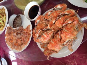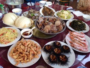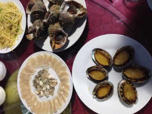 快7點(diǎn)了,吃了在小冷家的第一頓晚飯,太豐盛了,小冷說(shuō)今晚就我們幾個(gè)客人,大家敞開(kāi)了吃,不要客氣,吃飽吃好是最主要的,我數(shù)了一下是八個(gè)菜,都是大碟子裝的,由于我們午飯是湊合吃的,饑腸轆轆,一小時(shí)后只剩下幾個(gè)扇貝了,實(shí)在是撐得吃不下了。