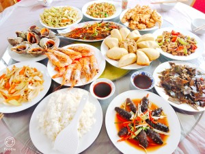 再說說吃的,一共兩天,第三天早上走的,三頓正餐,三頓沒一道菜是重樣的,螃蟹、扇貝、各種魚、海虹、海膽、海兔、生蠔、蟶子、八爪魚、不同做法的蝦,感覺太好了,每頓都吃不了,海鮮味道新鮮,和平時(shí)吃得口感真不一樣。