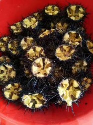 到了小梁家,小梁父母也特別和藹,跟親人一樣,熱情地招待我們,進(jìn)屋沒一會兒,一盆滿滿的扇貝、大大的大蝦、海膽、海參、兩條紅燜海魚、大海螺、鲅魚餡餃子等已經(jīng)擺上餐桌,我寶貝兒一看:哇!這么多!這么大!每天各種海鮮吃個曝,唉!那個鮮呀!不說了,流口水了!