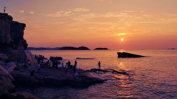 我們幾個(gè)家庭一起來長(zhǎng)島聚一下放松一下心情,在網(wǎng)上看了好多漁家,海之女漁家雖然不是最好的,但我感覺是最干凈的。房間設(shè)備齊全的,感覺特別溫馨,干干凈凈的。漁家阿姨做的紅燒帶魚鲅魚餃子那叫一個(gè)美味!我們現(xiàn)在還回味無窮。吃完飯溜達(dá)幾步就到海邊了,現(xiàn)在晚上天氣稍微有點(diǎn)冷還不能下水游泳。老板推薦在九丈涯看的日落,老板家旁邊的山上可以看日出,遺憾的是第二天四點(diǎn)就出發(fā)準(zhǔn)備去看日出,可是大霧天氣什么也沒看著,回來又繼續(xù)睡。八點(diǎn)起床吃過早飯老板提前給聯(lián)系的快艇去看島,第一次座快艇,刺激。萬鳥島也十分壯觀,確實(shí)值得一看。以后有機(jī)會(huì)夏季在來,推薦這家店。