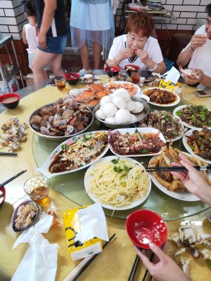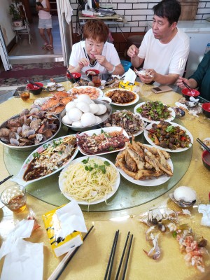同事去的長島 回來說小齊漁家不錯 我一直工作沒有時間去 今年我姨從外地來我家 我正好安排父母和我姨去長島玩玩 因為我工作比較忙 她們只能自己去玩 我讓小齊多照顧她們 因為都是六 七十歲的老人了,我也挺不放心的 我父親都七十了。她們也是頭一次去長島。在這里我最