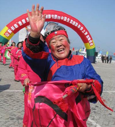 “咚咚鏘,咚咚鏘”,隨著一陣震天鑼鼓聲,上午9時,主題為“走進綠色旅游,感受生態(tài)長島”的第七屆漁家樂民俗文化節(jié)拉開序幕,長島港前人頭攢動,彩旗飄揚。來自濰坊的游客孫女士興奮地說:“早就聽說長島漁家樂很有特色,這次也是特地來體驗一下,嘗嘗鮮!”如果沒見過“漁家號子”和“祭?!?,來長島就絕對不能錯過,祭海是自古以來就有的風俗習慣,沿海漁民在出海捕魚前,通常要聚集到一起以祭祀的方式,祈求媽祖保佑風調雨順,平安發(fā)財;漁家號子是風帆時代島上漁民勞作時的集體創(chuàng)作,先是捕撈生產中拾錨、上網、豎桅、掌篷、搖櫓的呼喝,逐漸演變成以吆喝、吶喊、領唱、合唱為主要形式的“漁令歌”。