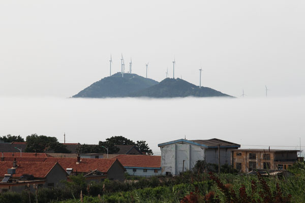 當天上午,一場大雨過后,山東長島各島嶼籠罩在一片濃密的白霧之中,而山上卻是一片陽光明媚的景象。濃厚的平流霧緩緩飄動,將一些景區(qū)和建筑物籠罩其中,氣勢壯觀。這一奇妙景觀持續(xù)了近5個小時。