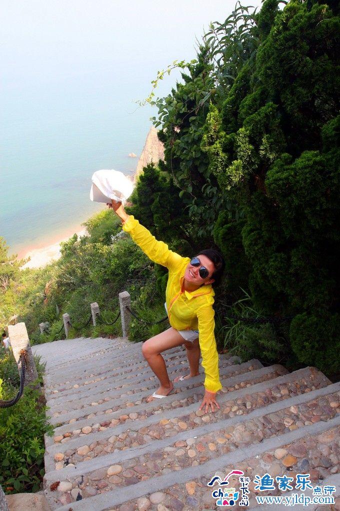 上午的興奮勁還沒(méi)散去,本打算午餐后回漁家樂(lè)小憩的計(jì)劃也就再次打破,冒著烈日先去了林海烽山,名字起的挺唬人,其實(shí)就是原來(lái)的黃渤海分界線加森林公園的一部分,乍一聽(tīng)還以為多出個(gè)風(fēng)林火山呢。對(duì)我來(lái)說(shuō)算故地重游了,大多數(shù)地點(diǎn)也就是到此一游的留個(gè)影,唯一值得推薦的就是爬下369級(jí)臺(tái)階的那片海灘,同樣的卵石灘,不同的是人更少,且有懸崖遮陽(yáng),即使是下午2點(diǎn)去也絲毫無(wú)礙,只是由于灘涂的特殊性不適合游泳,但是踩水休閑是絕好的去處,只是玩完后再爬上369級(jí)超陡峭的臺(tái)階,對(duì)于現(xiàn)在大多數(shù)office絕對(duì)有股想死的心。