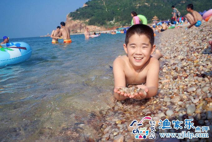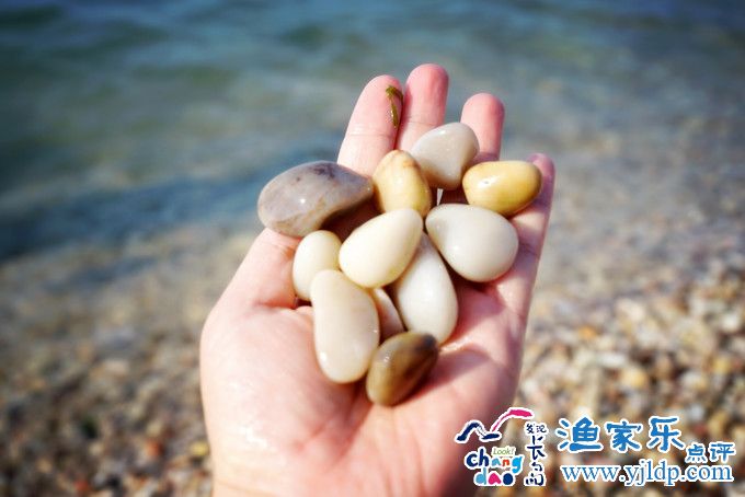媽媽留在岸上給我們看東西,我們幾個(gè)就迫不及待的沖到了海里,海水確實(shí)很清澈,最有情致的是月牙灣的球石。海灘球石是因?yàn)榈貧み\(yùn)動(dòng)地表隆起后造成鄰近山巒的巖石掉落,石塊置身于弧形的海灘,通過波浪無休止的沖刷磨礪而逐步變圓型成為球石。因石英巖中攙雜了鐵、錳、鋅等雜質(zhì),因此呈現(xiàn)出各種色彩。世上的海灣舉目皆是,而具有“皎白如美玉,晶亮賽琥珀”的千米球石長灘,卻只此一家,感動(dòng)于大自然的神奇,相信每一顆球石都有它自己的故事!山東長島