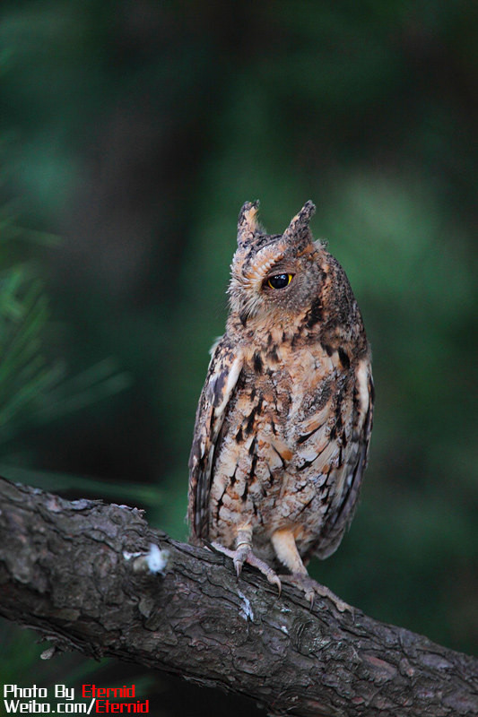 “東方角鸮”,小型猛禽,相貌十分符合公眾對貓頭鷹的形象,圓臉龐,大眼睛,還有一雙直立的“耳朵”。它有兩種姿態(tài),保護極好,他的羽毛的色彩和裂紋的質(zhì)感都很好的模擬了樹皮。如果它不動,你很難發(fā)現(xiàn)它的存在。東方角鸮是候鳥,秋冬季南遷到東南亞越冬。主要捕食大型昆蟲和小型嚙齒類動物。