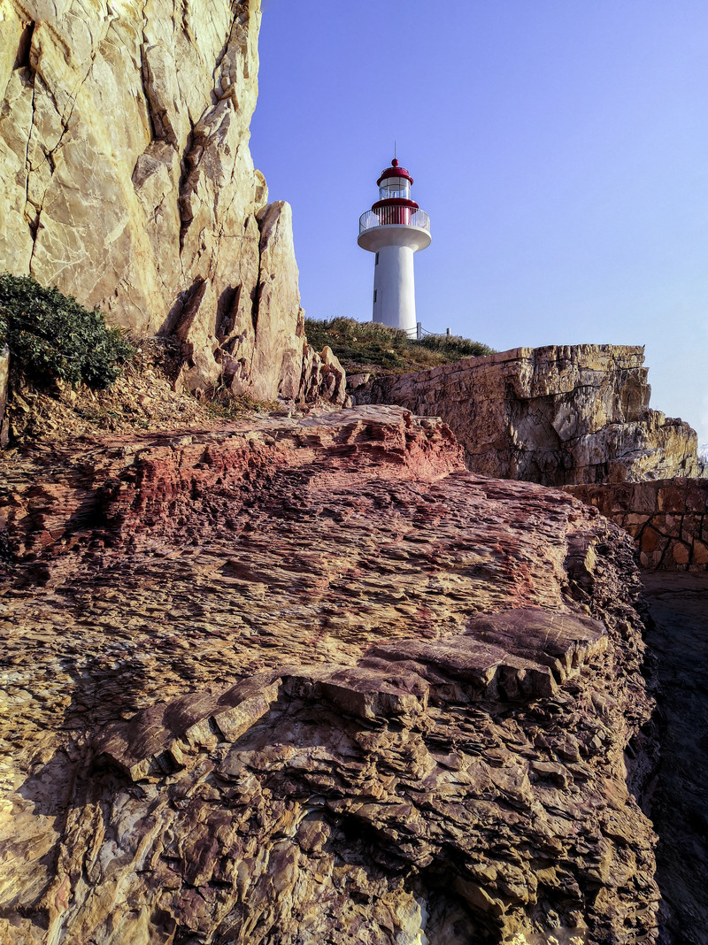 長山尾位于林海公園的最南端,長約兩千多米,由闊而尖的玉色石灘伸入海中,形成“龍尾”,將萬傾碧波一分為二,然后消失在登州水道。這里波涌流急,黃海和渤海在這里常年纏斗不休、涇渭分明卻又渾然一體,形成一個(gè)美妙的太極彎。▼