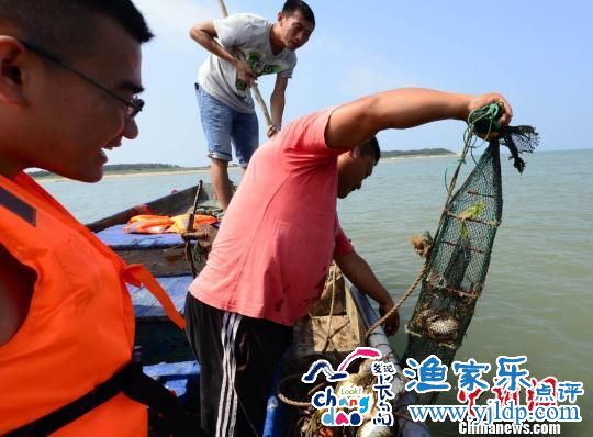 圖為游客跟隨漁民出海拔蟹籠。