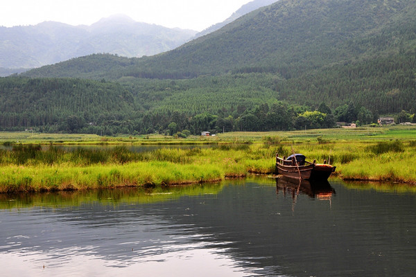 北海濕地是個神奇的地方,位于縣城西北向,距城12.5公里。水草密密麻麻,根交錯在一起,日復一日,年復一年,舊草腐爛,新的長在腐爛的草根上,然后又腐爛,然后又長出新的,最后形成整片整片的草甸各自浮在水面上,宛如一個一個的小草島,通常有一米多厚。遠看湖里的草是浮在水面上的,站在上面,腳下的草就能載著你漂到很遠的地方。在這里,你可以租雙草鞋,體驗“踩草”的樂趣。