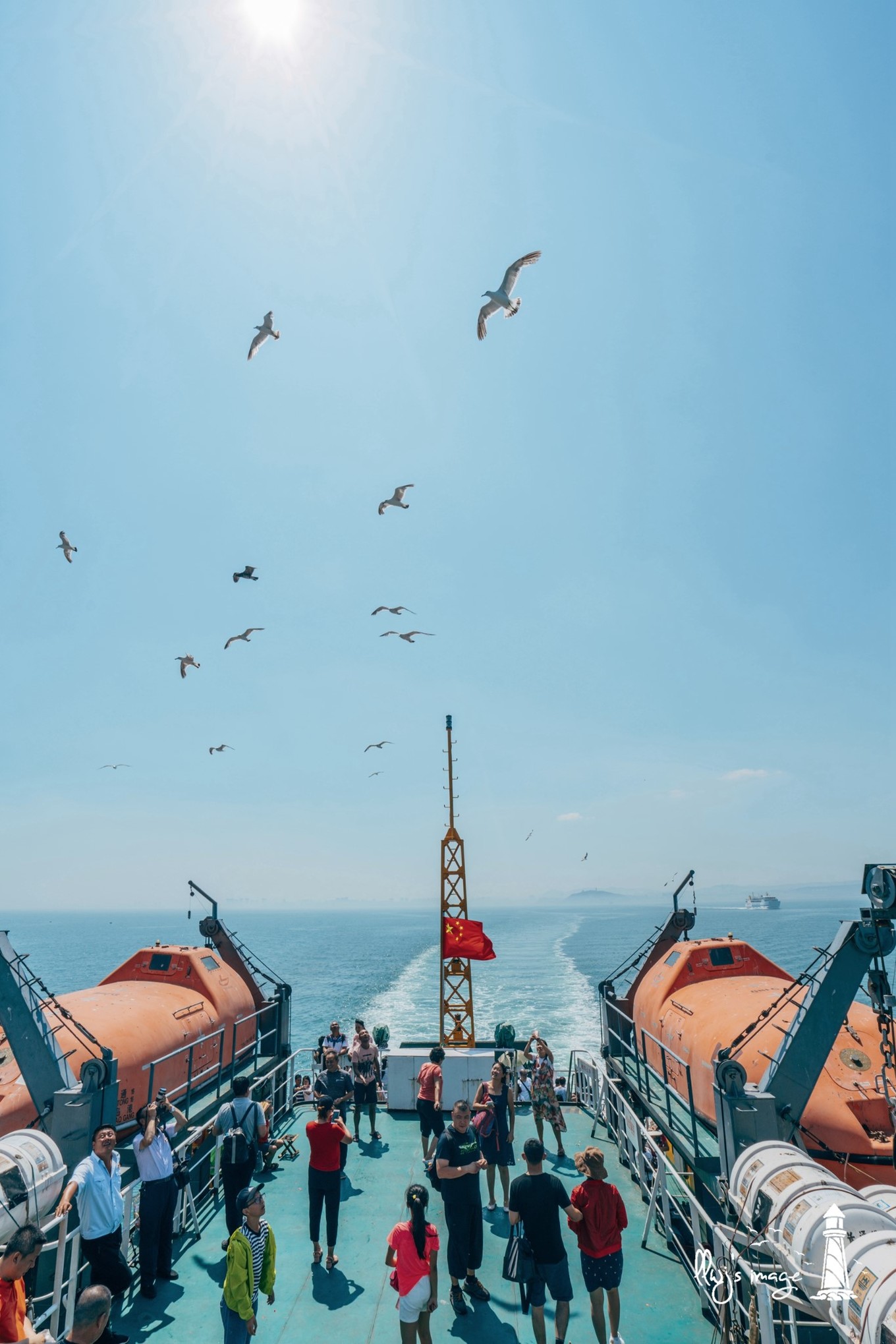 2、自駕車可以開上輪渡上島,暑期和國慶旺季每日限1000輛車,過了中午再開車上島基本無望