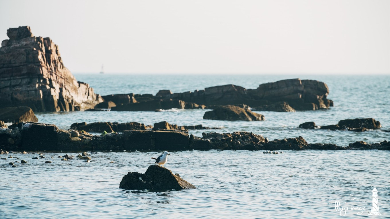 四周清凈極了,耳朵里只有潮水的陣陣涌動和遠處海鷗的輕聲鳴叫。蒸騰而起的水汽讓一切籠罩進迷幻當中,碧海藍天,潮聲陣陣,眼前就要幻化出一位東邪黃藥師,衣炔飄飄立于礁石之上,吹一曲碧海潮生。
