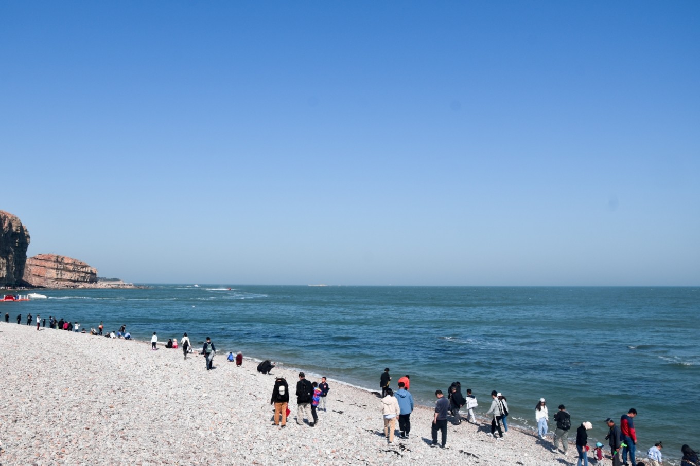 月牙灣因海灣形似一彎新月而得名,海灘延綿1000余米,是天然的海水浴場。月牙海灘為全國罕見的礫石灘。海灘球石是由于地殼運(yùn)動(dòng)地表隆起后造成附近山巒的巖石脫落,石塊置身于弧形的海灘,經(jīng)過海浪無休止的沖刷磨礪而逐漸變圓形成球石。因石英巖中夾雜了鐵、錳、鋅等雜質(zhì),因而呈現(xiàn)出各種顏色。